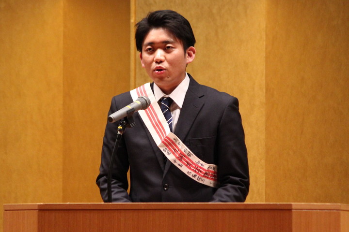 祝辞に対して、医学科を代表して中垣さん、生命科学科を代表して中村さんが本学ならびに本学部に感謝するとともに、九州大学で学んだ多くの事柄をもとに、我が国の将来の医療ならびに医学研究に貢献したいとの決意を述べました。