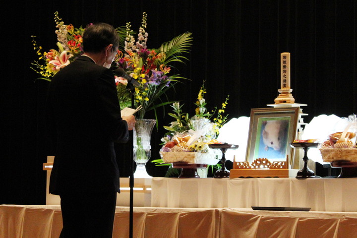令和4年度動物慰霊祭が、9月16日(金)に九州大学医学部百年講堂大ホールにおいて執り行われました。