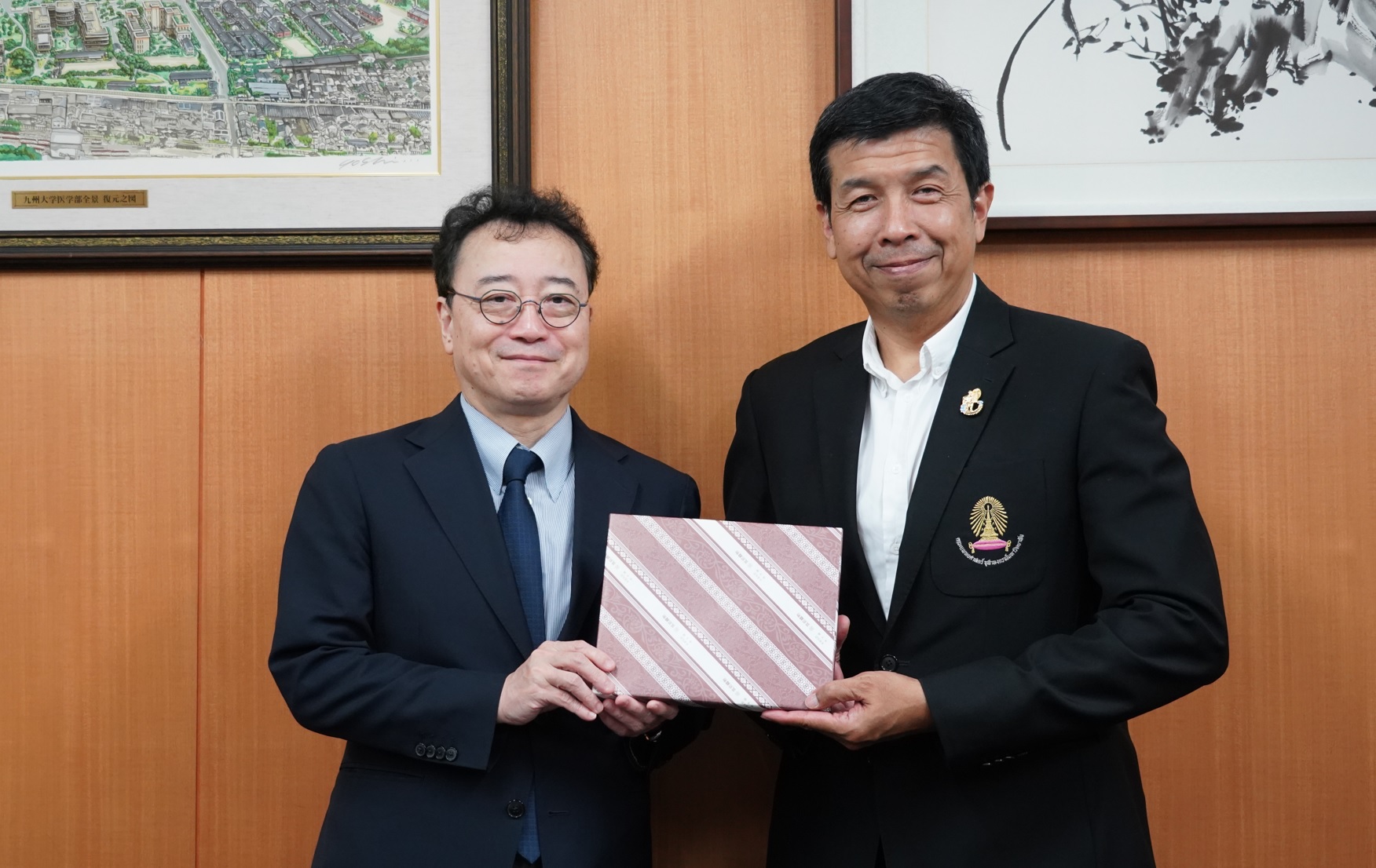 記念品交換の様子(左:赤司研究院長、 右:Sittipunt医学部長)