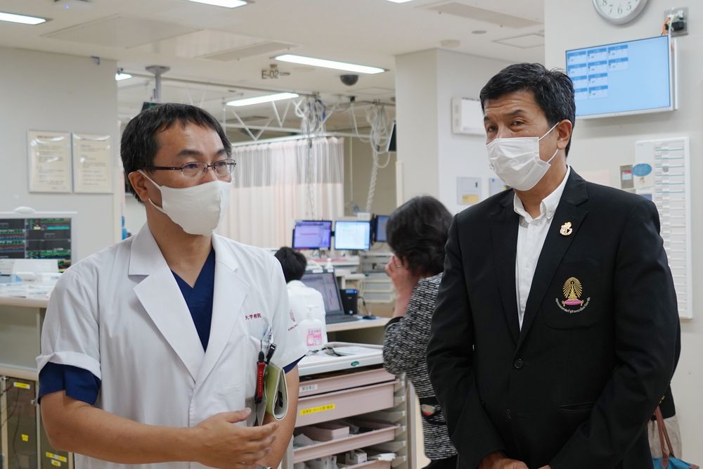 表敬訪問の後は、救命医でもあるChanchai Sittipunt医学部長に向けに、赤星教授が九州大学病院の救命救急センターの見学紹介を行いました。
