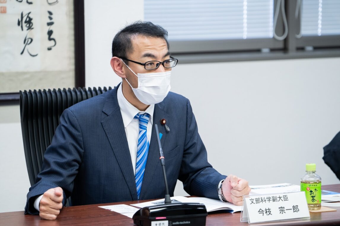 令和6年1月19日(金)、今枝 宗一郎(いまえだ そういちろう)文部科学副大臣が、本学を訪問されました。午前は伊都キャンパスを視察され、午後は病院キャンパスにて石橋総長、赤司副学長・医学研究院長、中村九州大学病院長らと今後の医師養成の在り方等に関して意見交換を行いました。赤司副学長・医学研究院長及び中村九州大学病院長からは、医学研究院及び九州大学病院の概要・取組について説明がありました。