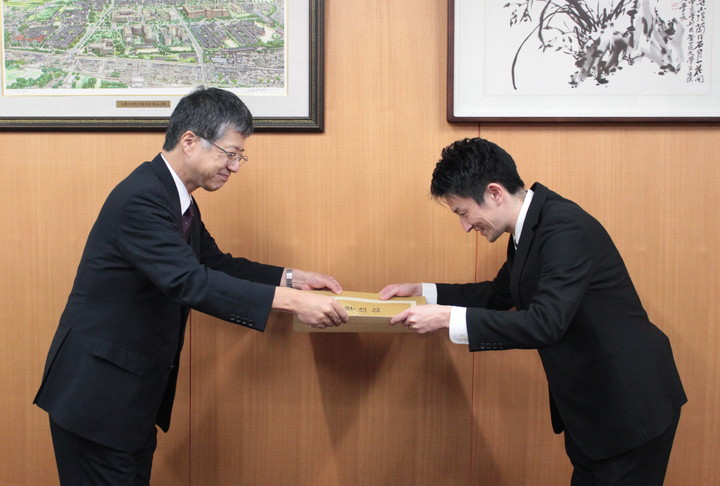 平成29年9月25日(月)14:30より医学研究院長室において表彰式が行われ、住本学府長から学位記の授与とともに盾が手渡されました。