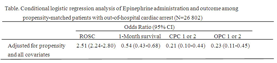 [発表論文] Prehospital epinephrine use and survival among patients with out-of-hospital cardiac arrest