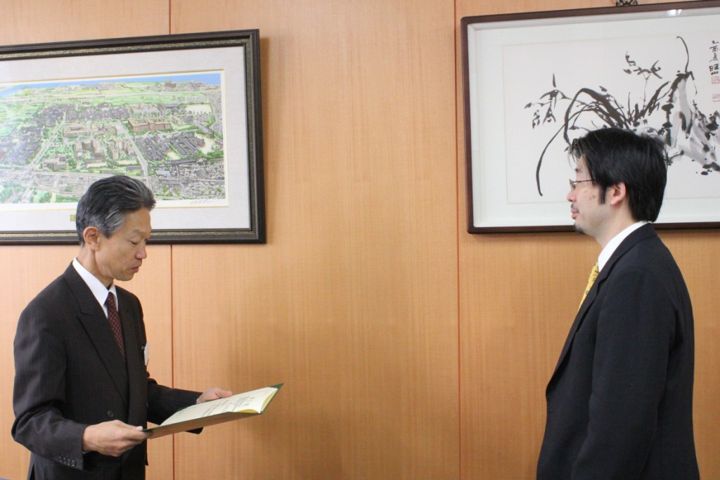 平成24年度(第41回)かなえ医薬振興財団の「アジア・オセアニア交流研究助成金」に杉山大介先生(現:ARO次世代医療ネットワーク推進室 室長)が採択され、11月8日(木)に公益財団法人 かなえ医薬振興財団から本校へ助成金贈呈訪問がなされました。