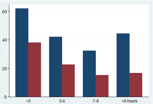 | (図3)平均睡眠時間と燃えつき症候群の割合 | |
