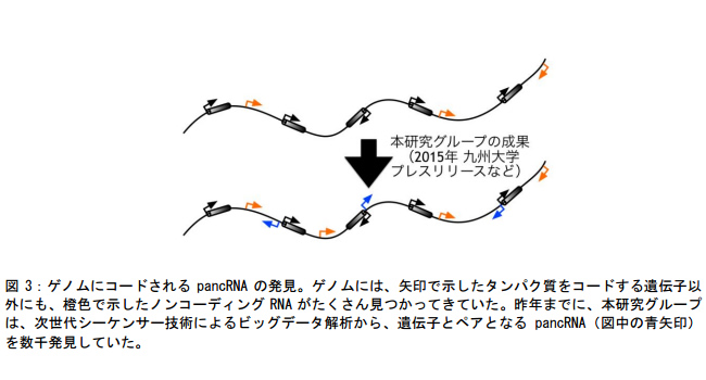 九州大学大学院医学研究院の今村拓也准教授、星薬科大学先端生命科学研究センターの山本直樹特任助教らの研究グループは、九州大学大学院医学研究院の中島欽一教授、京都大学大学院理学研究科の阿形清和教授との共同研究により、ほ乳類神経モデル細胞を用いて、1,000 を超える遺伝子にプロモーターノンコーディング RNA(pancRNA)(※1)がペアとなって存在することを発見していましたが(2015 年 2 月 5 日付けプレスリリース参照)、これらは、エネルギーを供給されても細胞が増殖せずに安定的に維持されるメカニズムに必須であることを今回新たに発見しました。今後、動物組織や細胞の多様性を生み出し、維持するための基本メカニズムを解明する研究の促進、また、再生医療に役立つ細胞における遺伝子スイッチを ON・OFF の両面から制御する応用展開が期待されます。